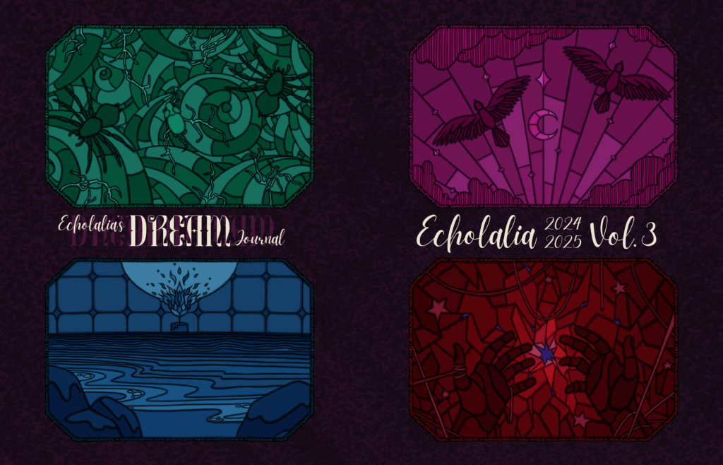 For Echolalia‘s third edition—the second in print—contributors were asked to explore what “dreams” meant to them. All sorts, from big life aspirations to small wishes, are featured inside.