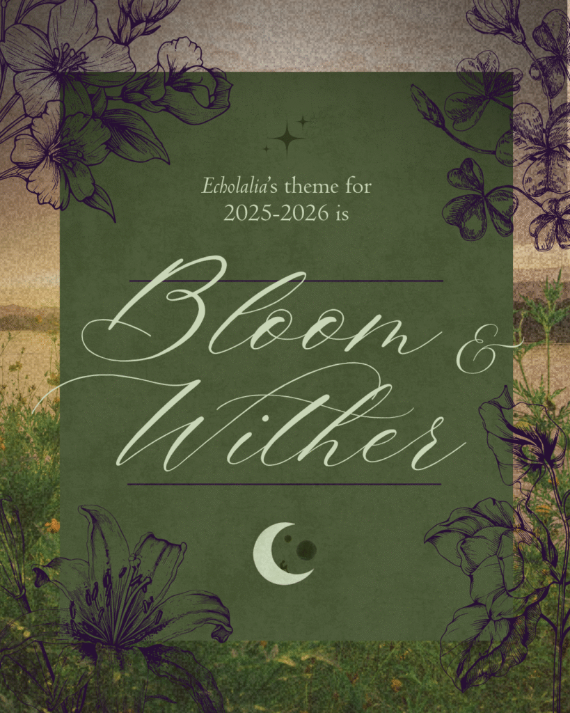 Echolalia wants to see your story and work as it relates to this year’s theme! Visit our Submission Guidelines page to learn more about our criteria and formatting; although we are not currently accepting submissions, our applications will reopen for the Winter quarter.